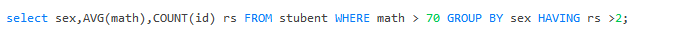 - where 在分组之前进行限定,如果不满足条件,则不参与分组,having在分组之后进行限定,如果不满足结果,则不会被查询出来