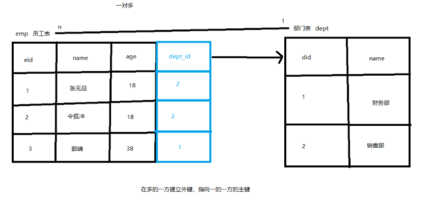 分析:一个部门有多个员工,一个员工只能对应一个部门