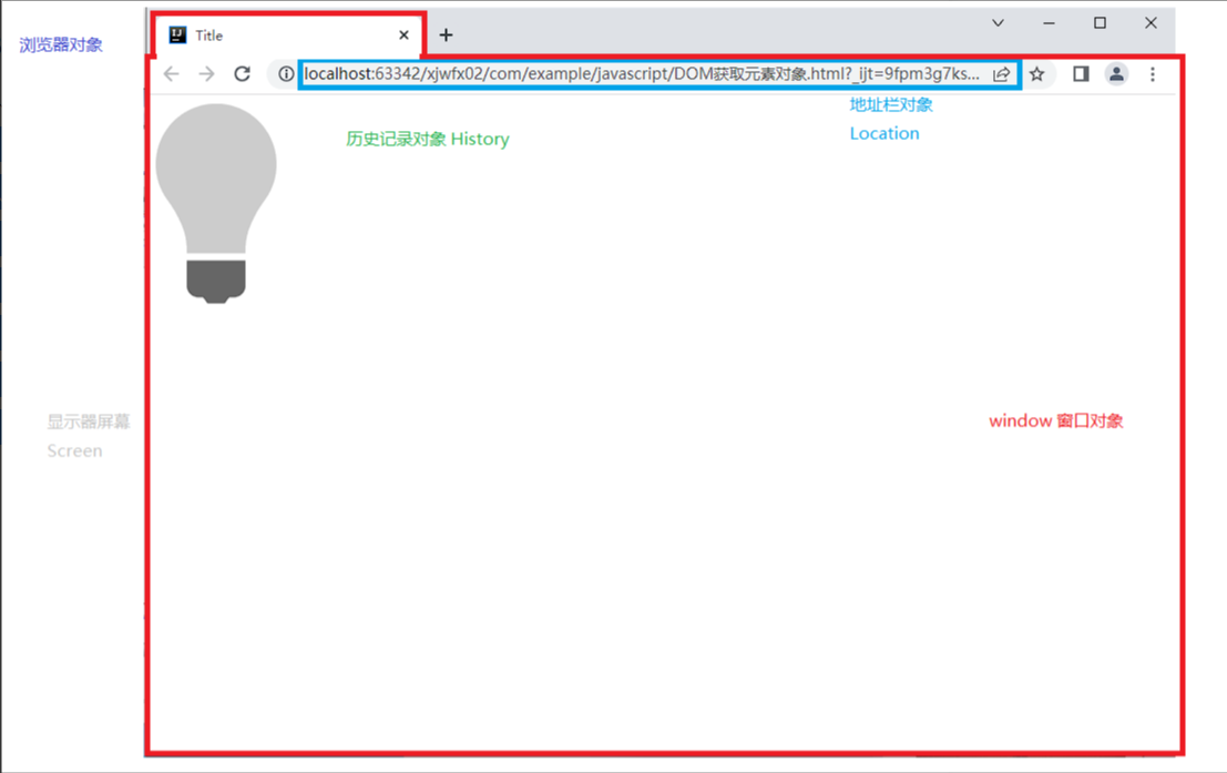 <body> <img src="img/off.gif" id="light1"> <script> /* 分析: 1.获取图片对象 2.绑定单击事件 3.每次点击切换图片 规则: 如果灯是开的 on 切换图片为 off 如果灯是开的 off 切换图片为 on 使用标记flag来完成 */ //1.获取图片对象 let light = document.getElementById("light1"); var flag = false; light.onclick = function (){//点击事件 if (flag){//判断如果灯是开的,则灭掉 light.src = "img/off.gif"; flag = false; }else { //如果灯是灭,则打开 light.src = "img/on.gif"; flag = true; } } </script> </body>