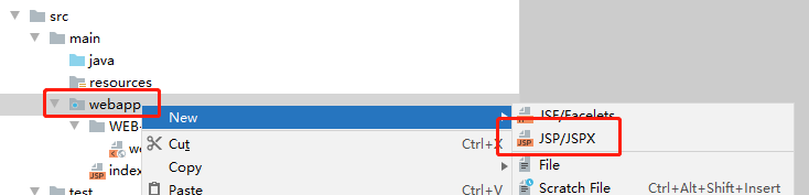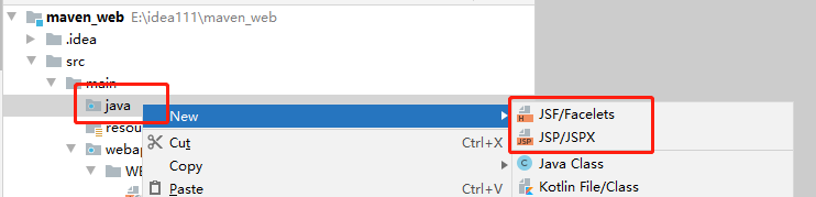 在webapp包下可以直接创建jsp文件 ,但是在java包下我们不可以直接创建jsp文件。