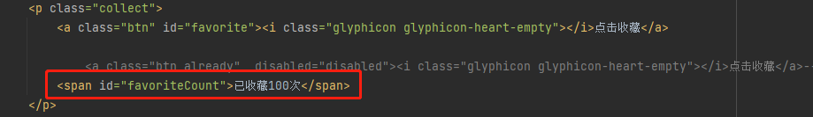 $(function () { //发送请求,判断用户是否收藏过该线路 let rid = getParameter("rid"); $.get("route/isFavorite",{rid:rid},function (flag) { if (flag){ //用户以及收藏过 //<a class="btn already" disabled="disabled"> //设置收藏按钮 $("#favorite").addClass("already"); $("#favorite").prop("disabled",disabled); }else { //用户没有收藏 } }); });