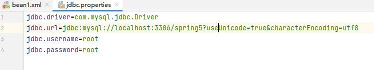 <!-- 组件扫描 --> <context:component-scan base-package="com.atguigu"/> <!-- 引入外部属性文件 --> <context:property-placeholder location="classpath:jdbc.properties"/> <!-- 配置连接池 --> <bean id="dataSource" class="com.alibaba.druid.pool.DruidDataSource"> <property name="driverClassName" value="${jdbc.driverClass}"/> <property name="url" value="${jdbc.connectionURL}"/> <property name="username" value="${jdbc.username}"/> <property name="password" value="${jdbc.password}"/> </bean>