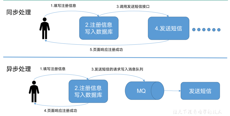 消息生产者生产消息发送到Queue中,然后消息消费者从Queue中取出并且消费消息。
