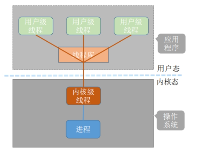 在支持内核级线程的系统中,根据用户级线程和内核级线程的映射关系,可以划分为几种多线程模型:
