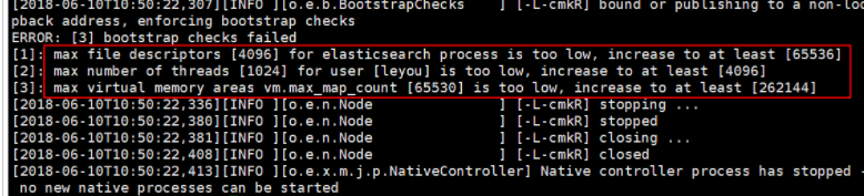 [3]: max virtual memory areas vm.max_map_count [65530] likely too low, increase to at least [262144]