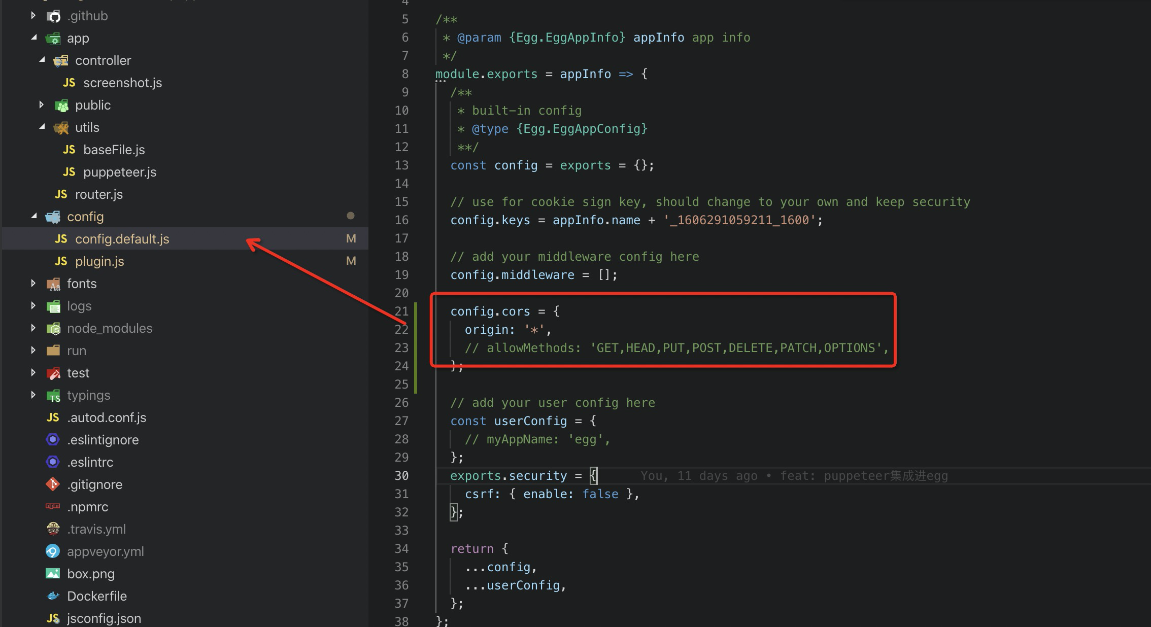 cors: { enable: true, package: 'egg-cors', },