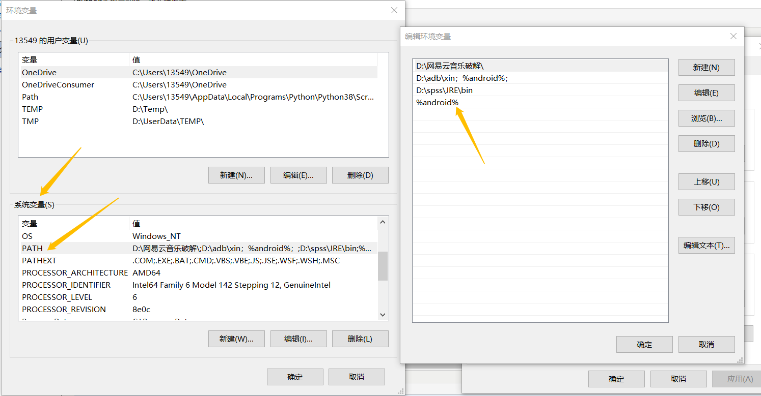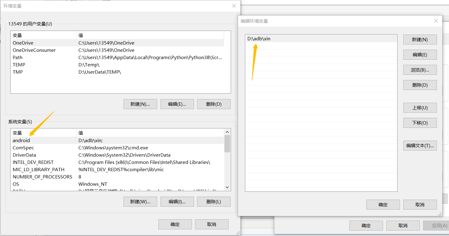 进入环境变量配置页面之后,在系统变量中找到Path,点击Path再点击编辑,然后将刚才安装adb的路径复制,这里我们是以E:\adb为例的,所以我们将这个路径加入进环境变量中,点击保存。这时候我们再次打开CMD控制台,输入adb,出现如下界面,即为配置成功