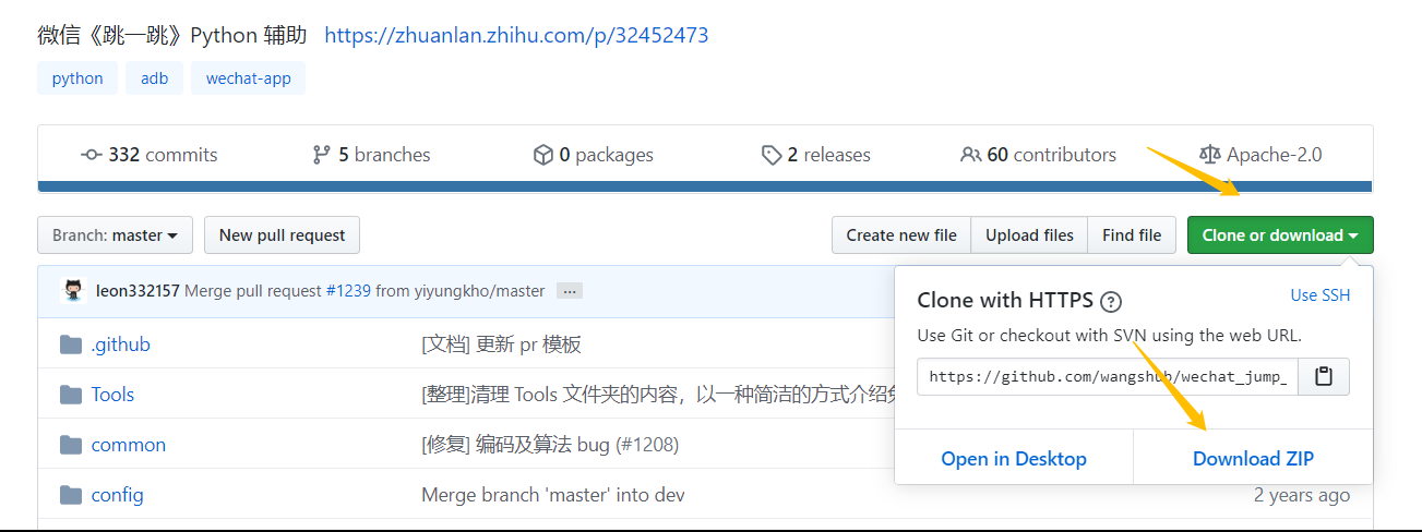 进入github后,点击clone or downloads,把源码下载到本地,并将下载之后的源码包解压缩。