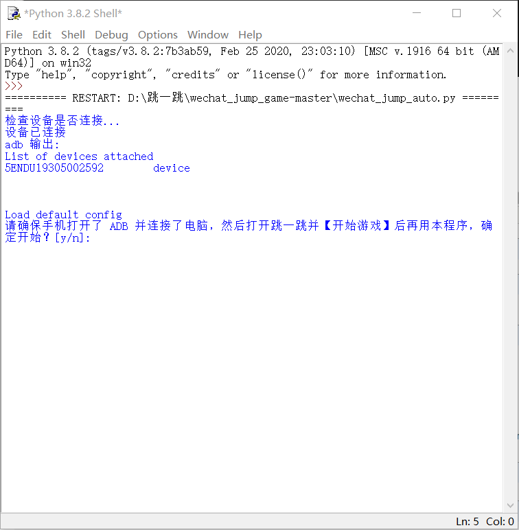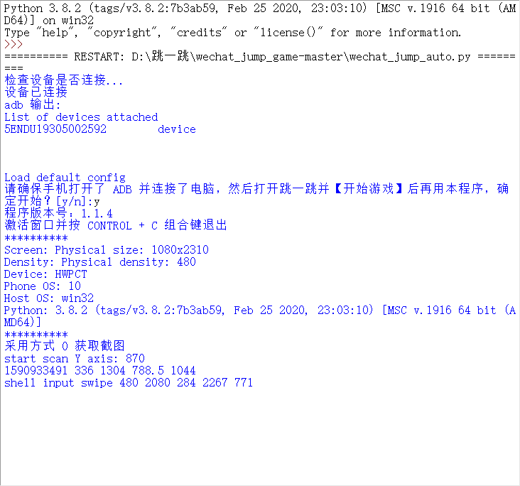 此时跳一跳开始运行,Crtl+c可以停止程序