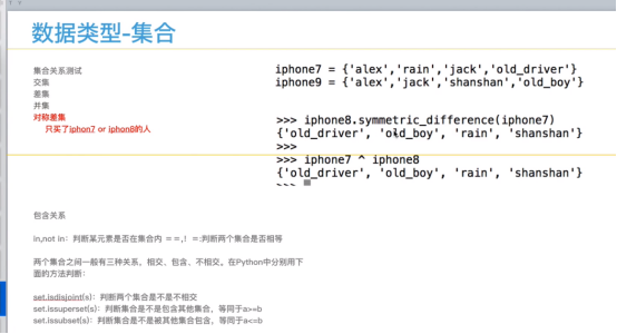 >>> a ^ b # 不同时包含于a和b的元素 {'r', 'd', 'b', 'm', 'z', 'l'}