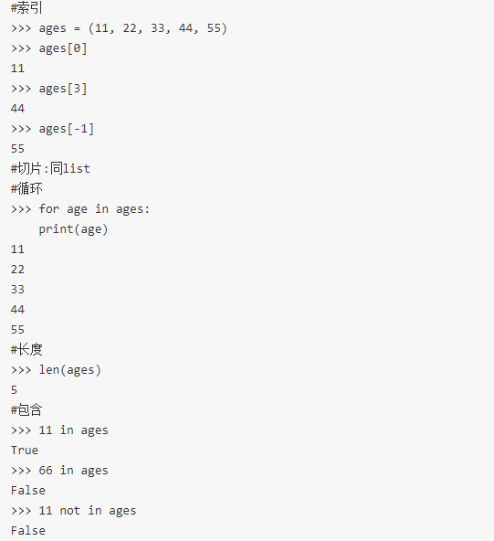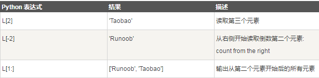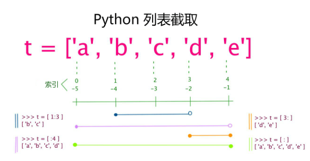 索引值以 0 为开始值,-1 为从末尾的开始位置。