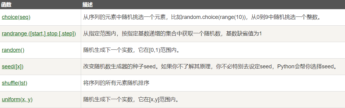 chr() 用一个范围在 range(256)内的(就是0~255)整数作参数,返回一个对应的字符。 语法 chr(i) 参数 i -- 可以是10进制也可以是16进制的形式的数字 实例 >>>print chr(0x30), chr(0x31), chr(0x61) # 十六进制 0 1 a >>> print chr(48), chr(49), chr(97) # 十进制 0 1 a
