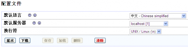然后点击“显示”,在转到的页面里可以自行添加语句,如果直接点击“下载”,产生的文件就能解决“配置文件现在需要一个短语密码”的问题,我们先直接点击“下载”,现在我们需要把这文件上传到phpmyadmin目录下,还有一件事情需要做,赋予config.inc.php权限: