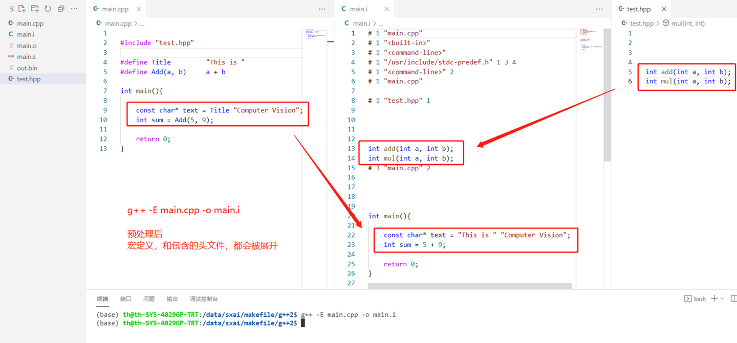 预处理指令效果:g++ -E main.cpp -o main.i