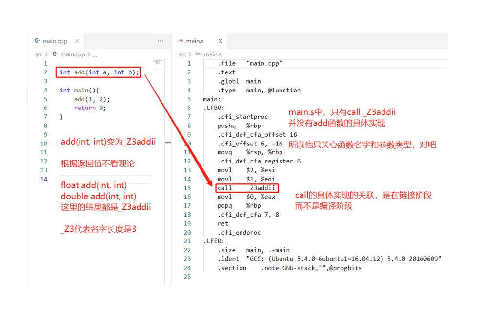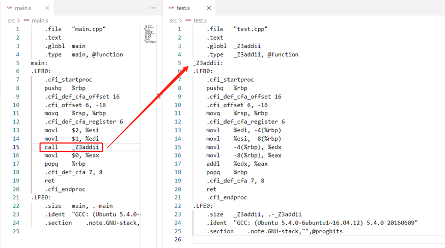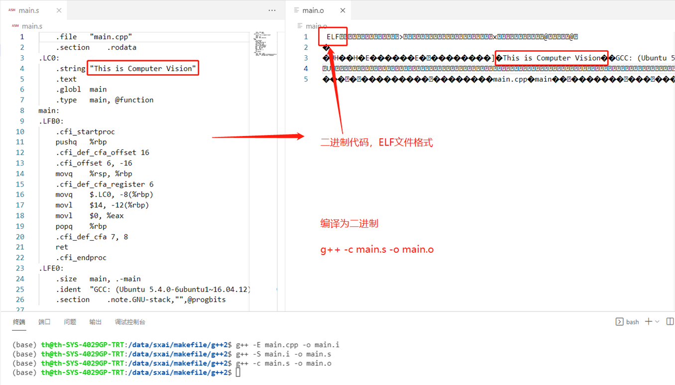编译指令效果:g++ -c main.s -o main.o