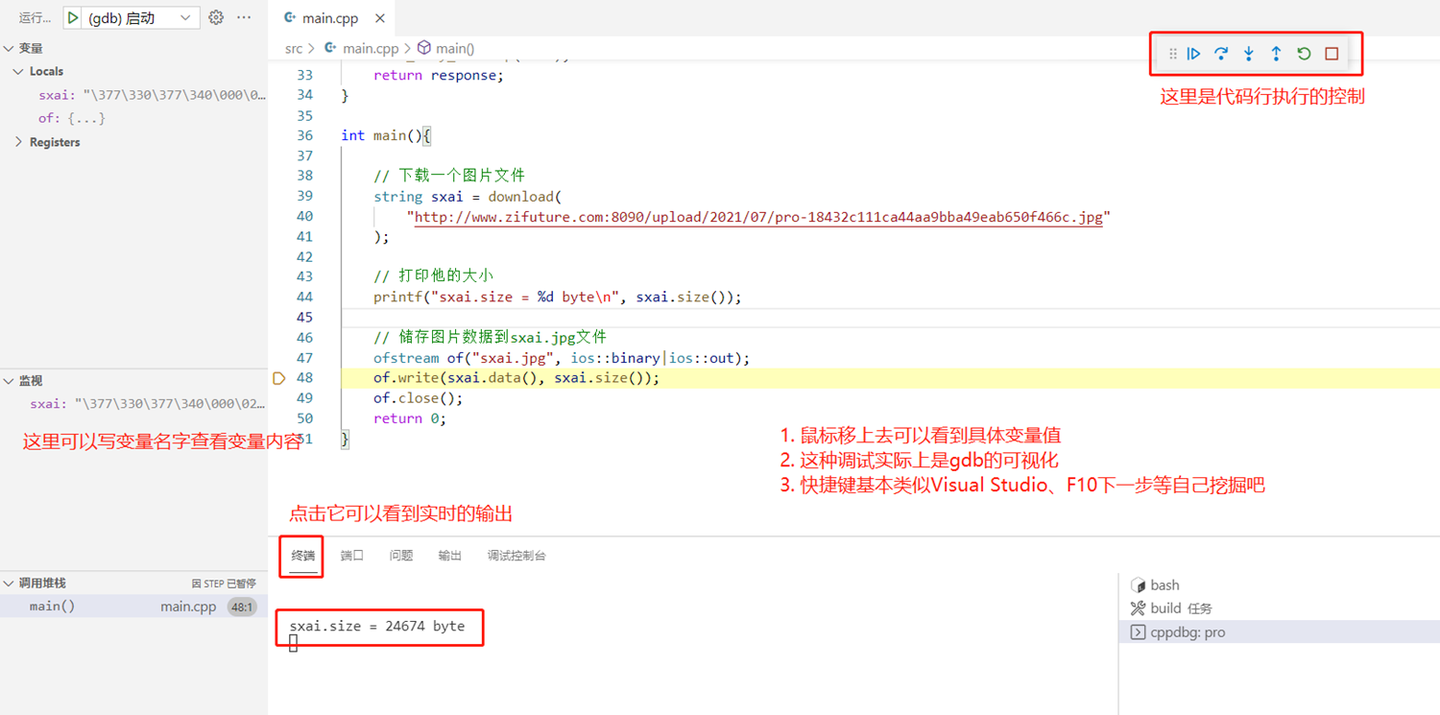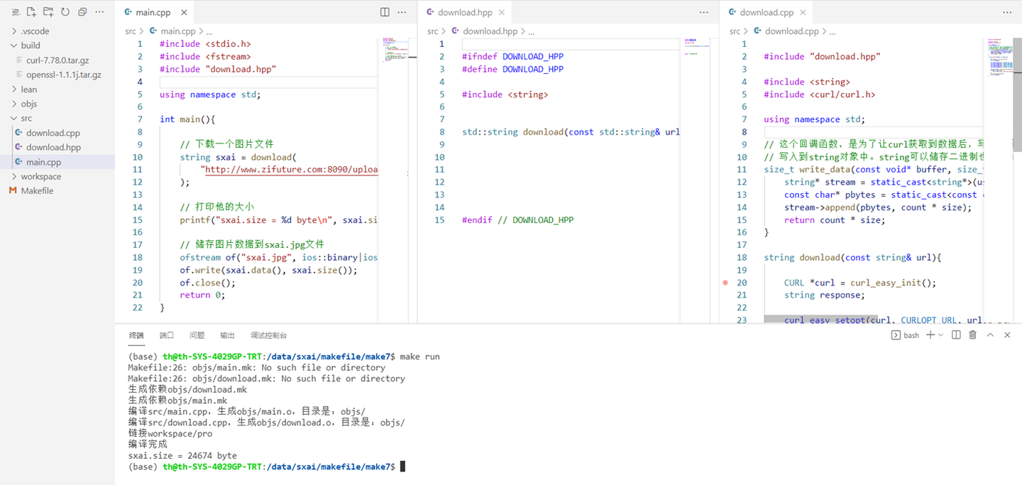 - 文件下载成功,至此。整个http的访问工程就达成了。你学会如何控制,头文件、库文件路径了吗?还有o文件存放工作目录等