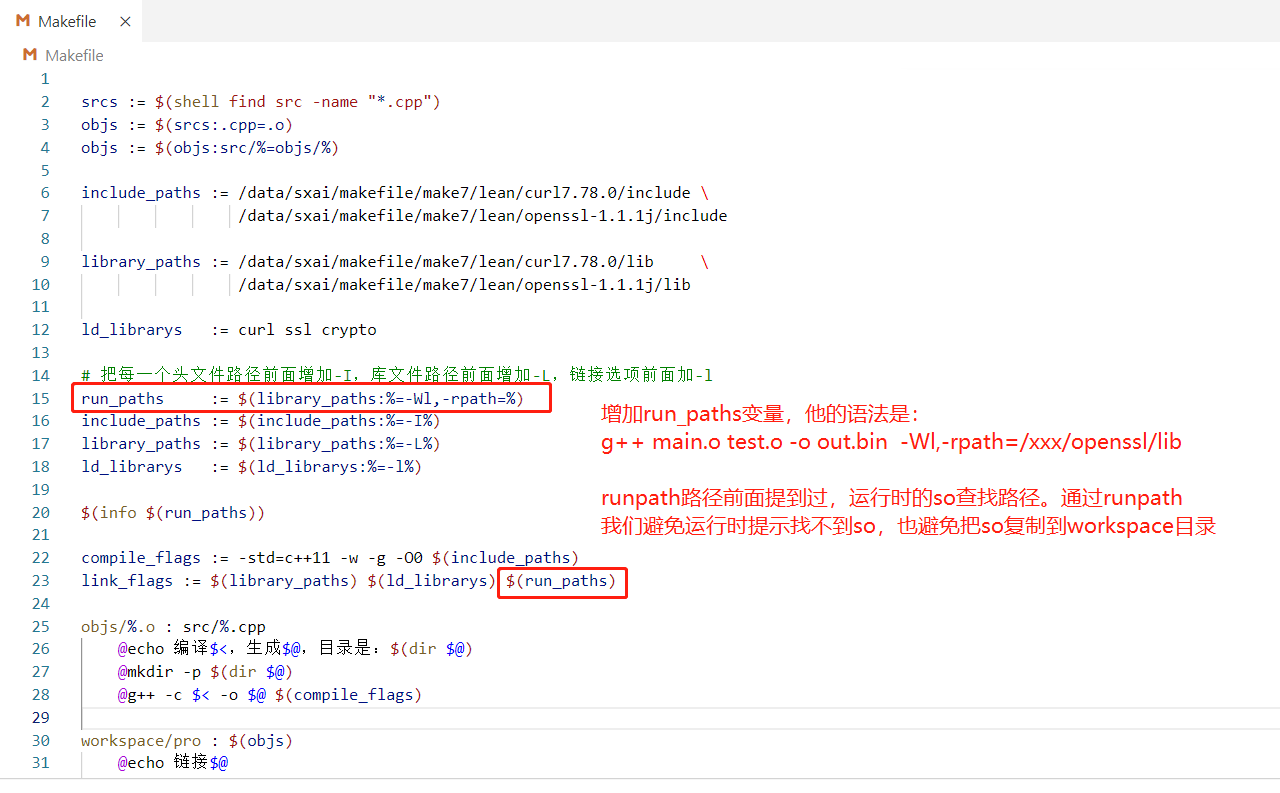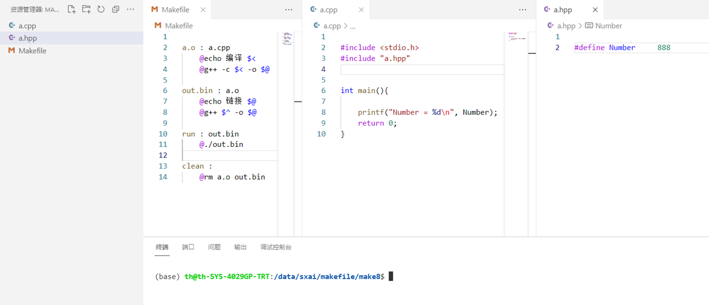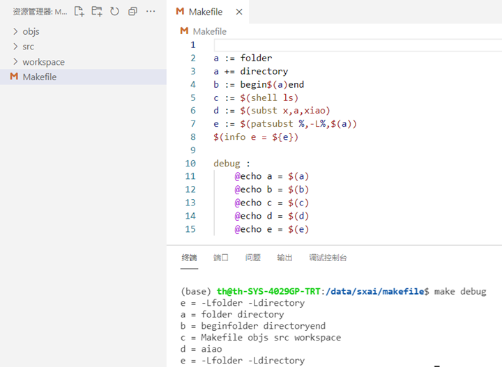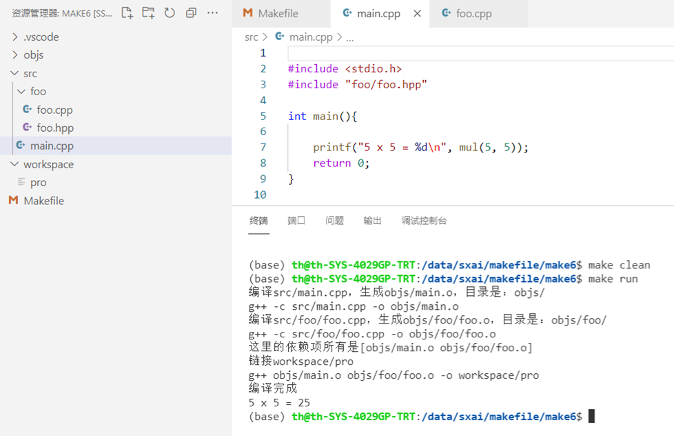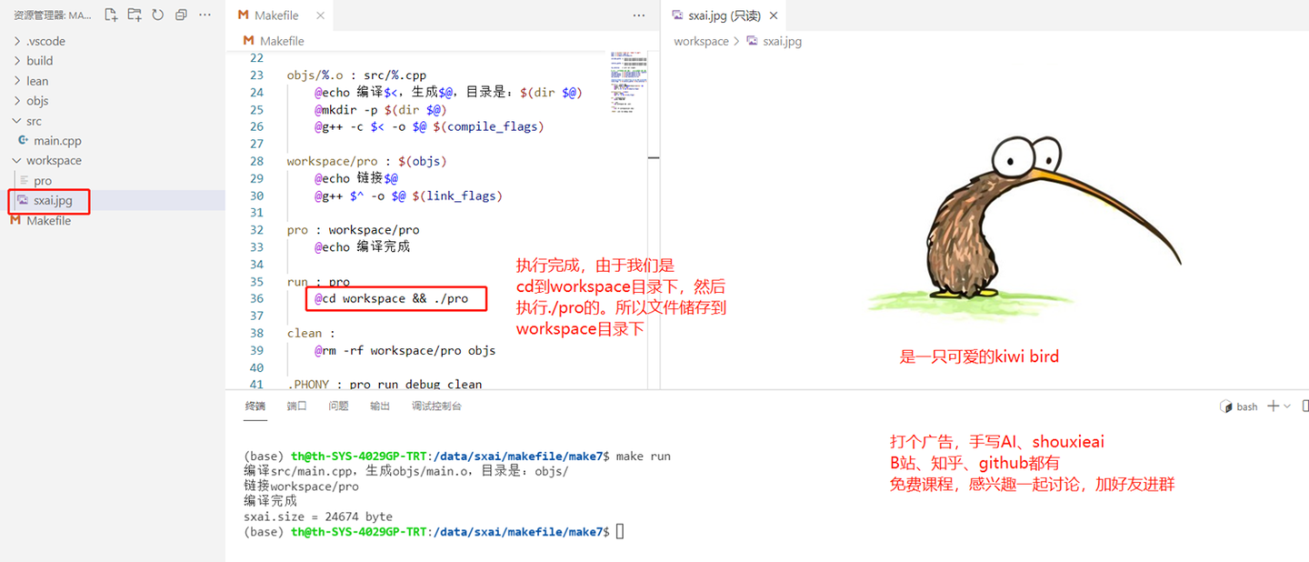 - 添加make run,编译后顺便执行一下,注意: cd到workspace是为了让运行程 序后的当前工作目录在workspace中