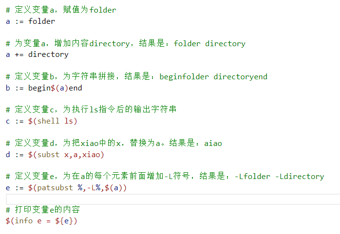 - 参考官方文档,查看更多定义:http://www.gnu.org/software/make/manual/make.html