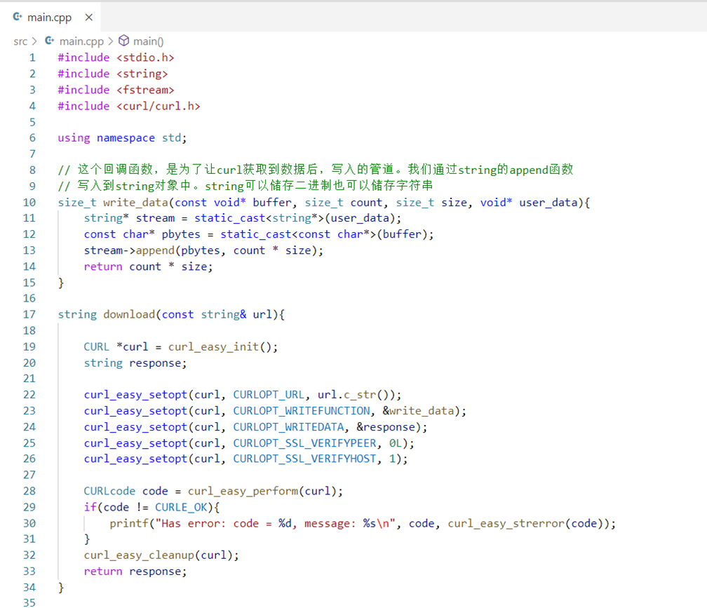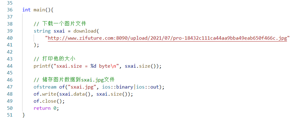 - 实现一个main函数,调用download。给定地址是一个图片下载好后储存为文件