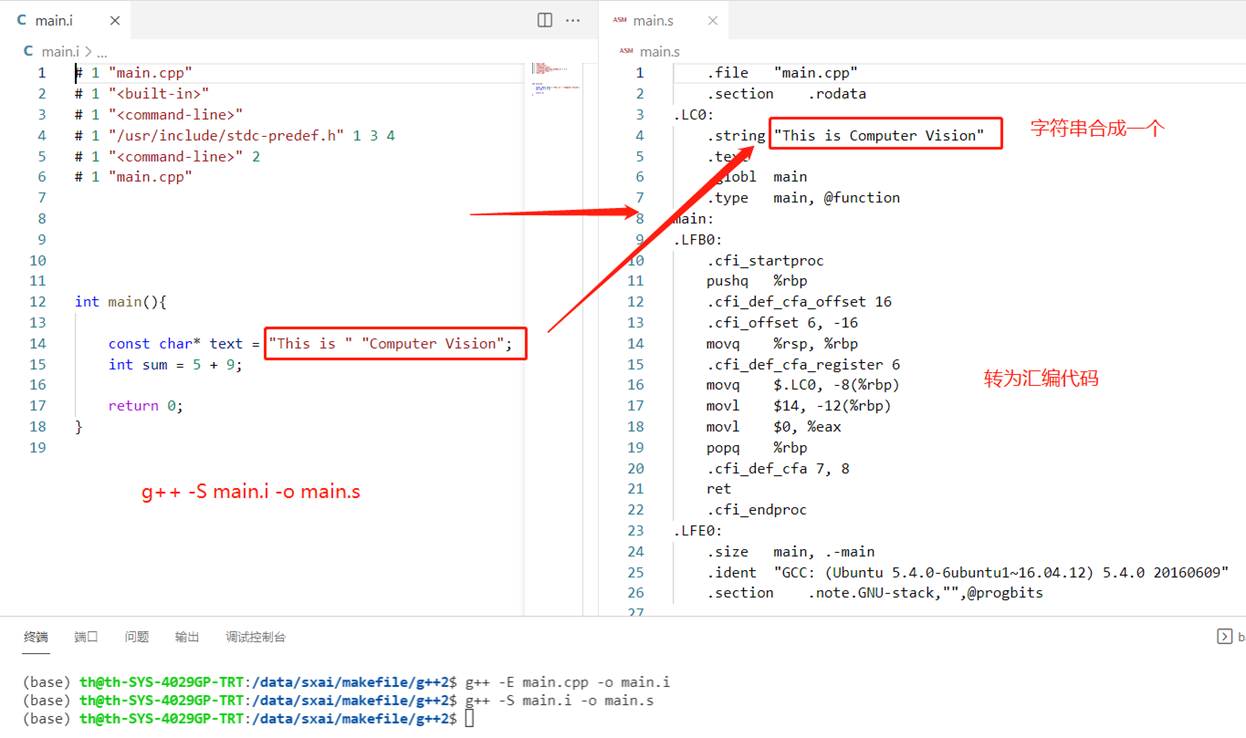 汇编指令效果:g++ -S main.i -o main.s