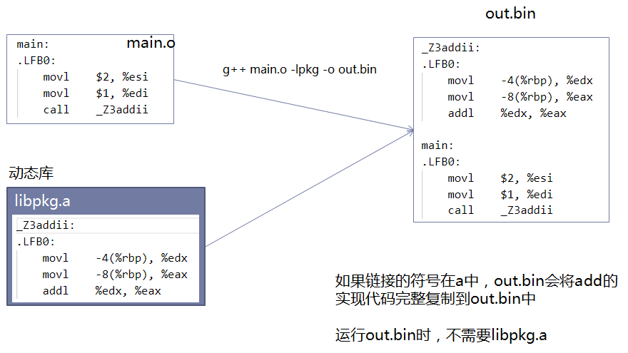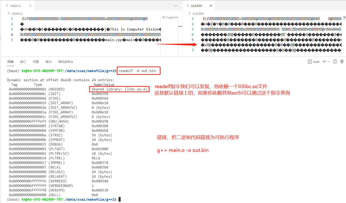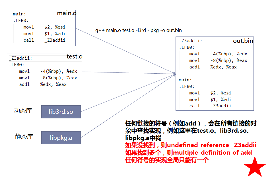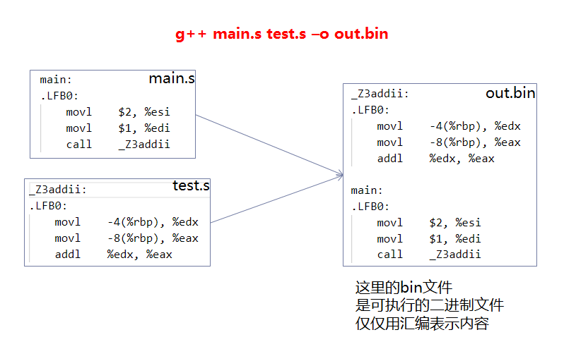 链接指令效果:g++ main.o -o out.bin