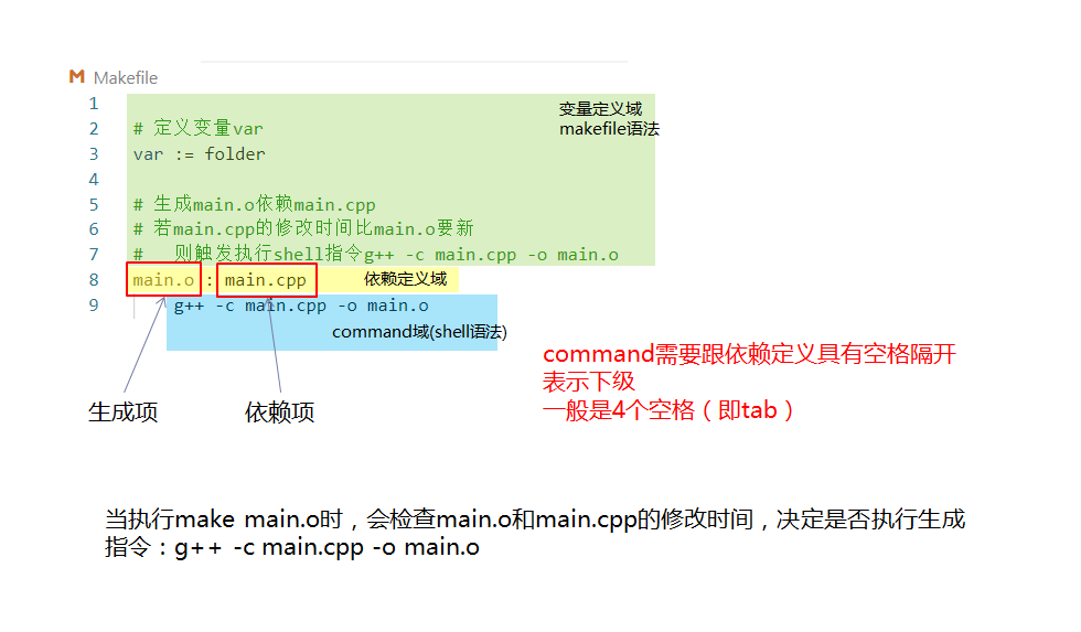 - Makefile基本语法,依赖关系定义