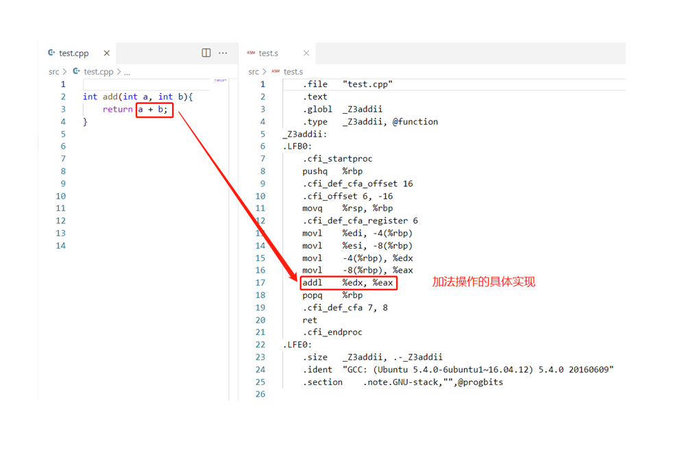 - add的具体实现在test.s里面