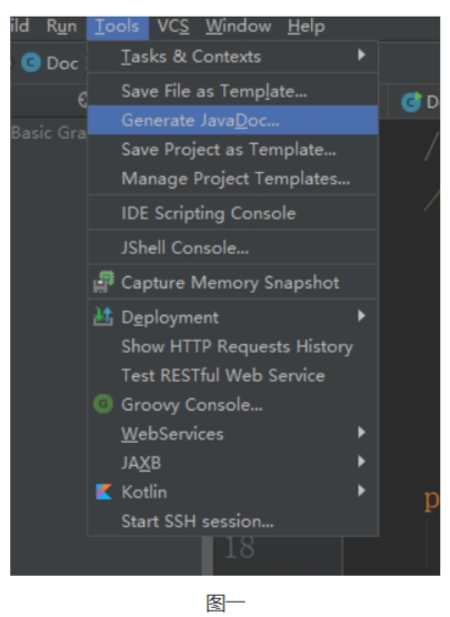 2.打开IDEA上方工具(Tools),生成JavaDoc文档(Generate JavaDoc...)//如图一