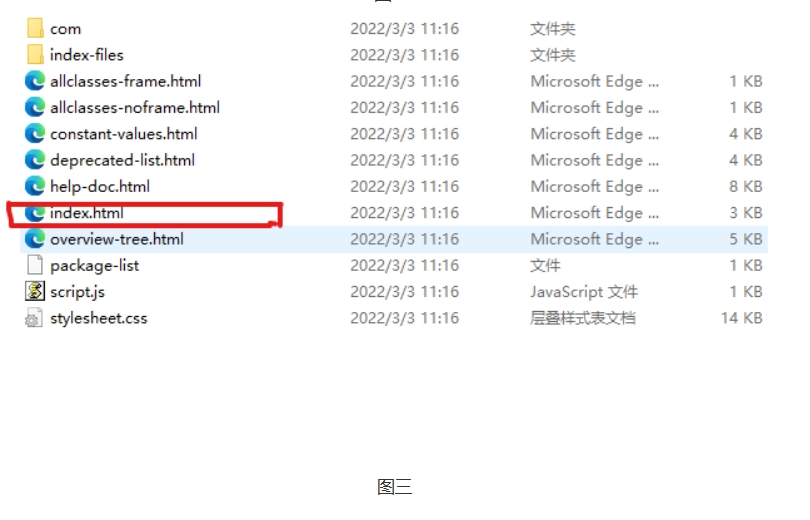 6.进入存放JavaDoc文件中点击index.html即可看到我们生成的JavaDoc文档//如图三