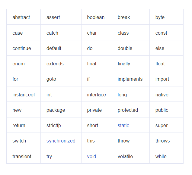 - 不能使用关键字作为变量名或方法名