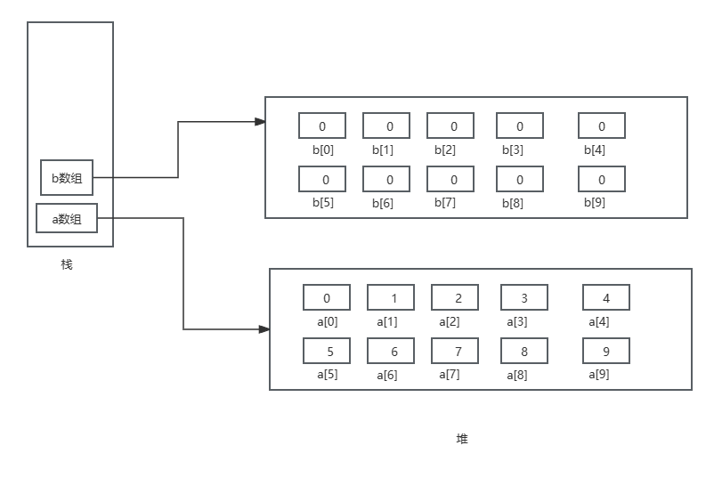 - 数组变量属引用类型,数组也可以看成是对象(new创建的对象),数组中的每个元素相当于该对象的成员变量。数组本身就是对象,Java中对象是在堆中的,因此数组无论保存原始类型还是其他对象类型,数组对象本身是在堆中的