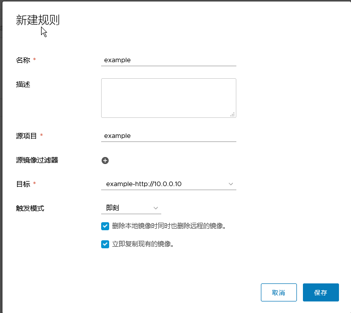 3.点击 复制管理>新建规则) ;由本机harbor向另一个harbor复制