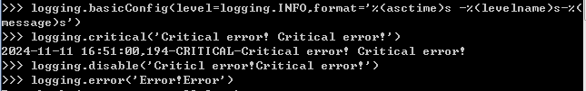 logging.disable() 函数的用法是,向其传入一个日志级别,它会禁止该级别以及更低级别的所有日志消息。因此,如果想要禁用所有日志,只要在程序中添加 logging.disable(logging.CRITICAL) 即可,例如: