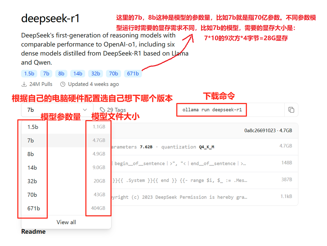 点击模型名之后,会跳转到下载模型命令的页面,如下图所示: