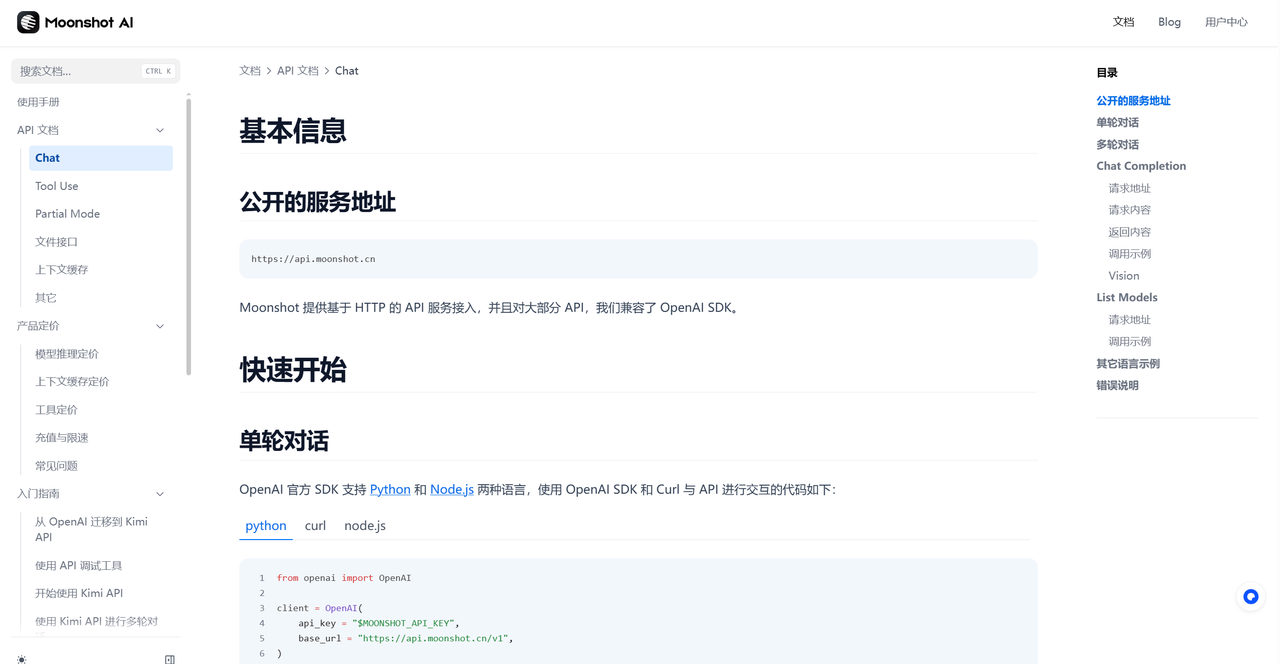 Moonshot开发平台:https://platform.moonshot.cn/docs/api/chat