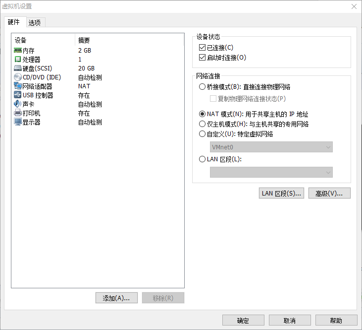 然后检查虚拟机设置,如下