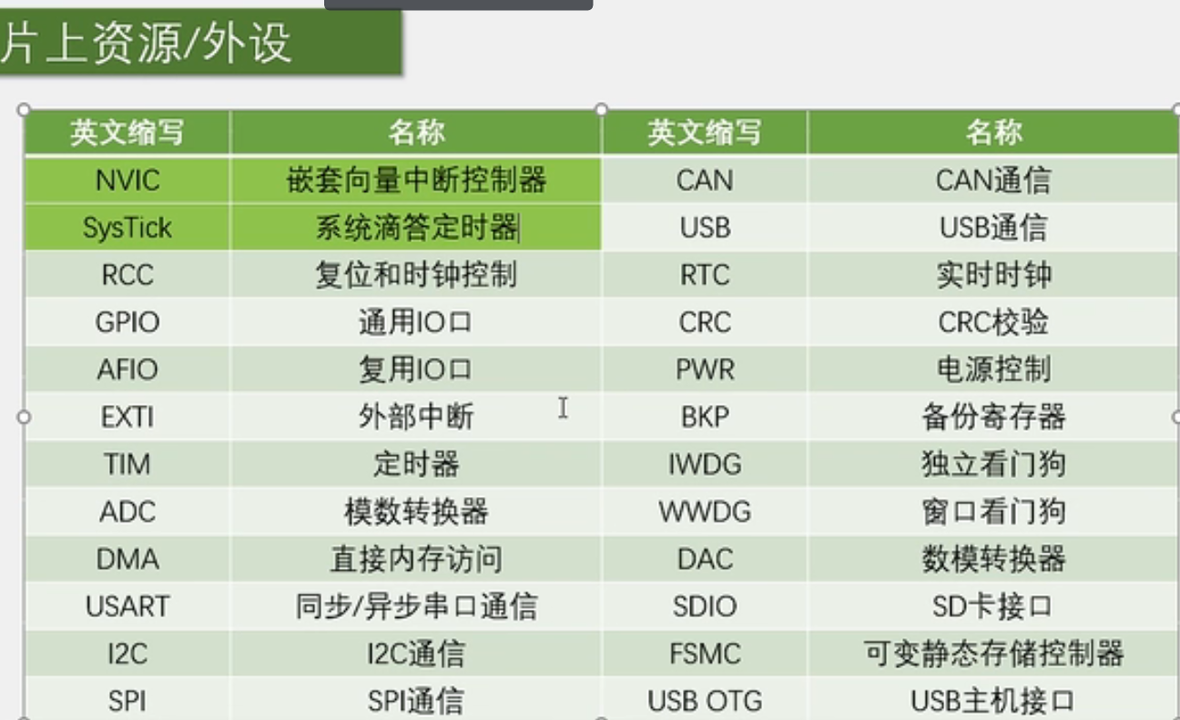 2.1 深绿部分为位于Cortex-M内核的外设,其余为内核外的外设。