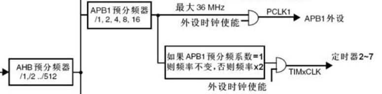 时钟:内部时钟AHB 72MHz,通用定时器挂载APB1总线上,时钟36MHz,标准库默认设置。