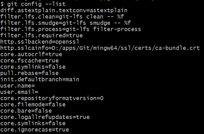 git config --list:查看全部git配置信息。
