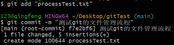 创建文件 -> 添加内容 ->添加进暂存区 ->提交暂存区的文件。