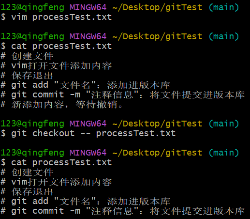 对于工作区的文件修改之后,未提交暂存区之前可以使用此命令撤销对文件的修改,即使是删除文件,只要没有加入暂存区,也可以通过此命令进行恢复。