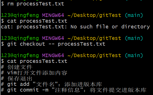 对于从工作区删除的文件再次提交暂存区和版本库后,文件将被彻底删除。