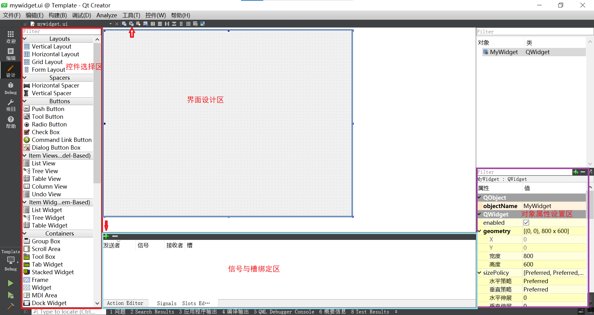 3.2 单击界面设计区的控件/界面选择对象,然后在对象属性设置区设置选定对象的相关属性。