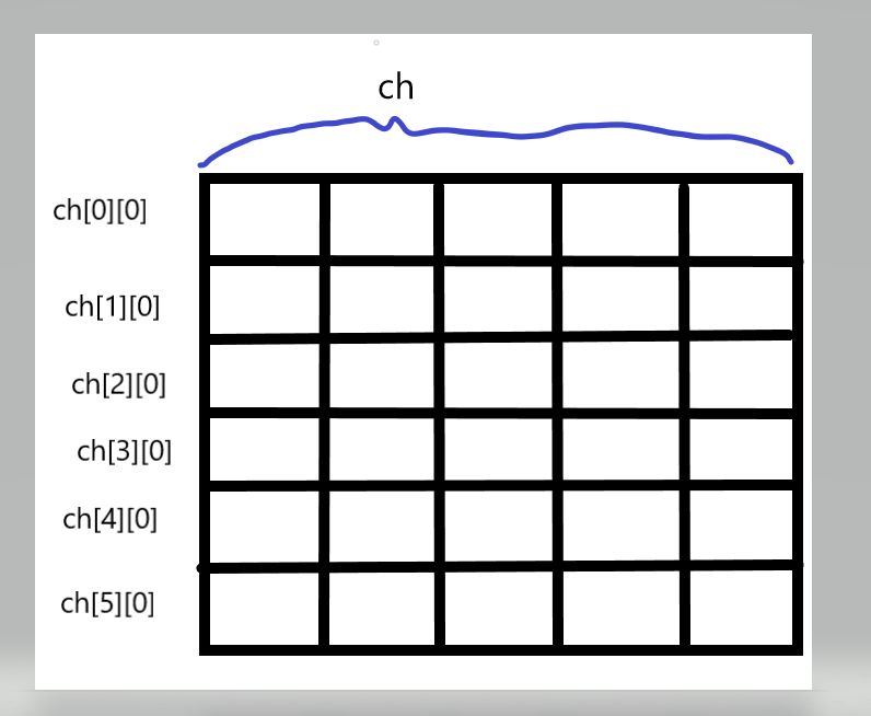 ch[0][18]相当于*(*(ch+0)+18),它输出结果为Z