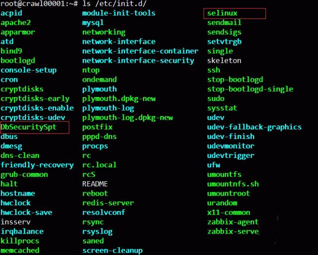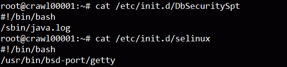 再执行 ps –ef 命令看下,奇怪,java.log 进程又起来了,难道有自启动设置?于是到了 /etc/init.d 下查看,有个异常脚本,在正常系统的也没有,打开看了下,果然是启动木马程序的脚本。把脚本删除,再删除一次 java.log,不再出现了。
