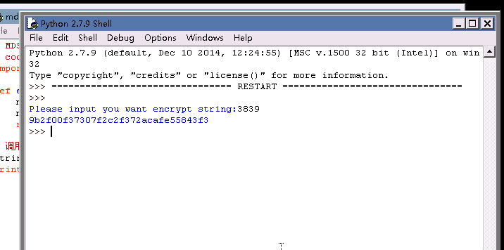 任务描述:使用任意一种语言,对特定的四位数字进行MD5加密(例如‘3839’),输出加密后的结果、