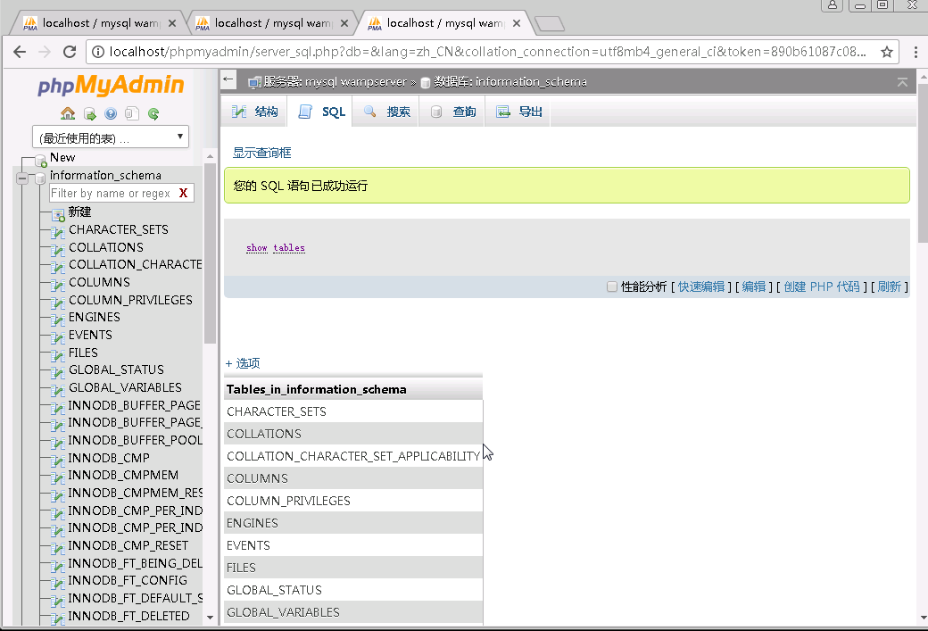 1. 在phpmyadmin中,在左侧点击information_schema数据库。