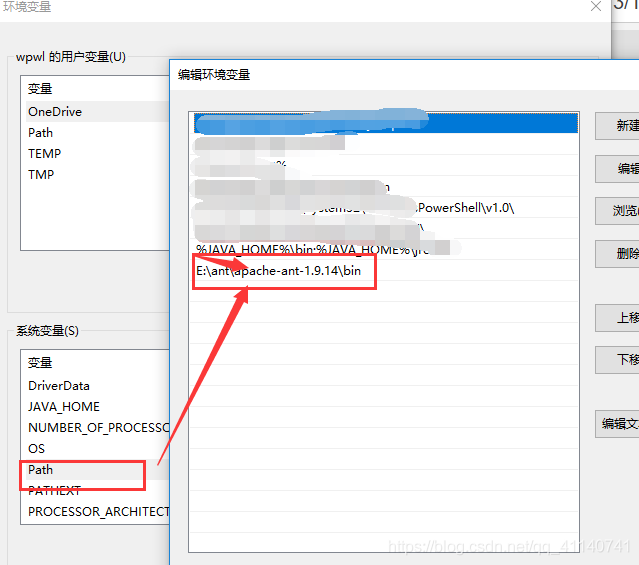 在Path中添加:E:\ant\apache-ant-1.9.14\bin