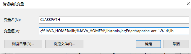 在CLASSPATH 中添加:E:\ant\apache-ant-1.9.14\lib