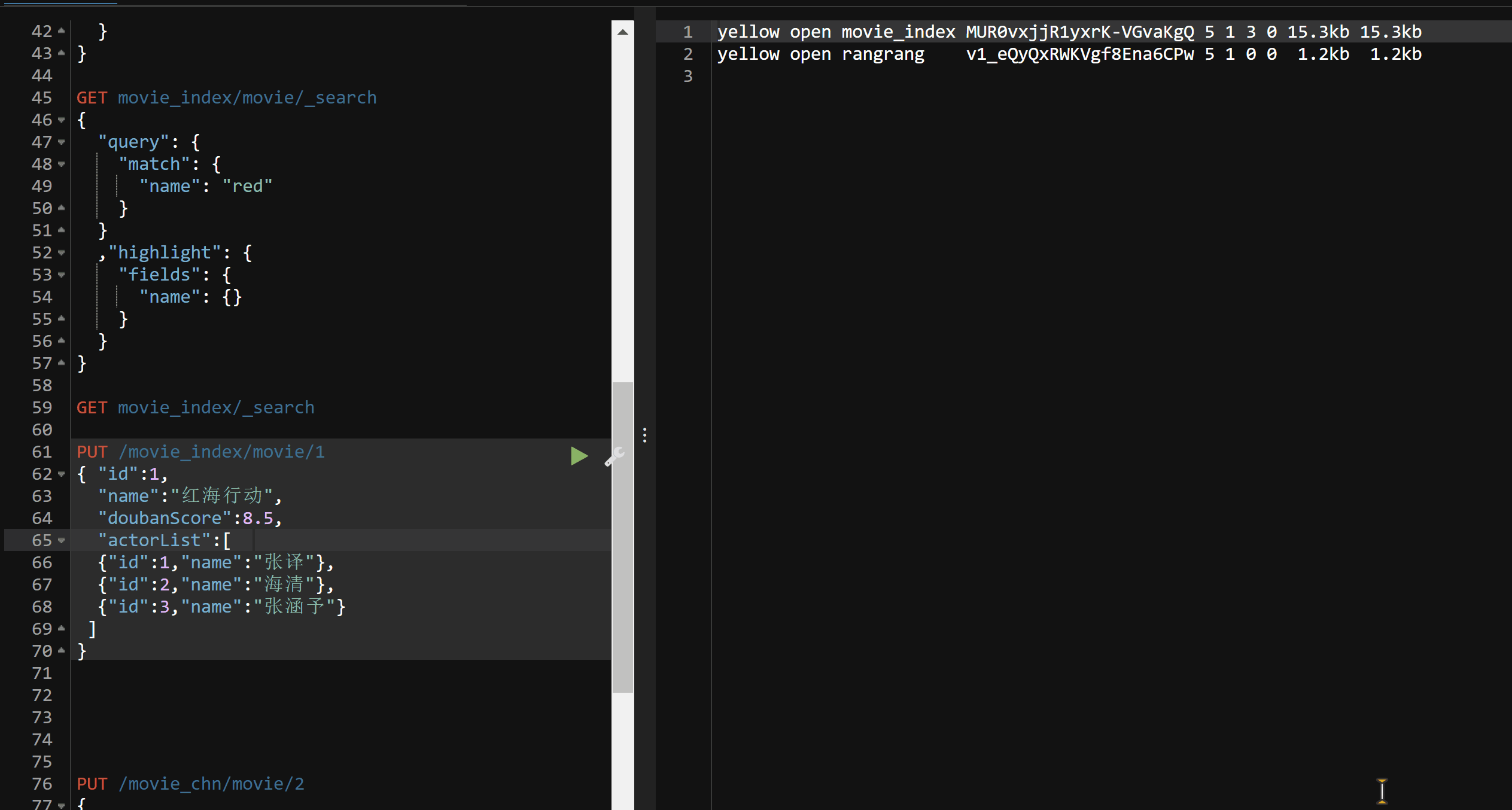 测试完分页查询操作之后,我们再来测试一下高亮显示,其实这里的高亮显示是和上面的关键字查询是想匹配的,就和我们正常的高亮显示是一样的,大家想想我们一般会让什么东西高亮显示呢,很明显就是我们需查找的东西.所以高亮显示一般就是与关键字查询相匹配的.